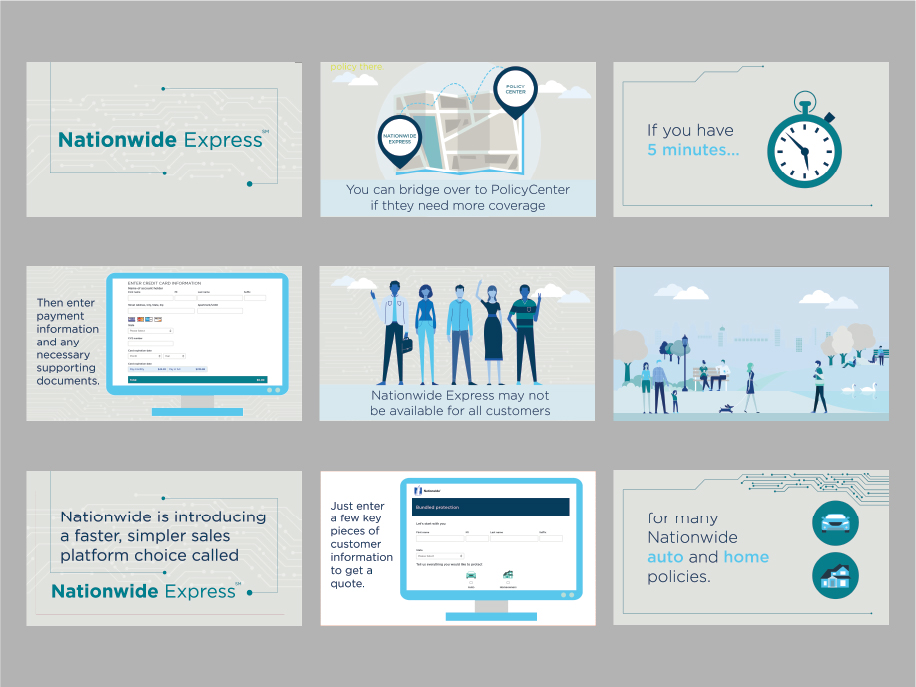 Story board examples from video animations. The animations were created using Illustrator, After Effects, and Premiere.
